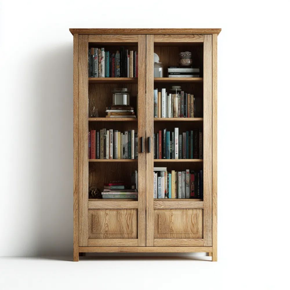 Materiale e Finitura: Realizzata in legno massiccio di rovere, la libreria presenta una finitura naturale che enfatizza le venature naturali del legno.