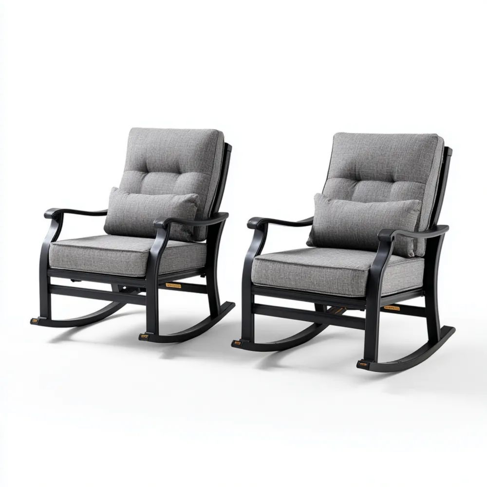 Prodotto:Questo set include due sedie a dondolo eleganti progettate per l'uso in ambienti esterni, ideali per aggiungere comfort e stile al tuo spazio all'aperto. Le dimensioni di ciascuna sedia sono 65 cm di larghezza, 90 cm di profondità e 105 cm di altezza.